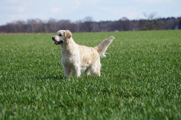 41/2 Monate, ein "Spring ins Feld", femininer Kopf mit freundlichem Ausdruck, korrekte Halslänge und obere Linie, ausgeprägte Vorbrust, dem Alter entsprechen entwickelter Brustkorb, kurze Lenden, korrekte Winkelungen, gerade kräftige Läufe, geschlossene Pfoten, schönes cremefarbenes Haarkleid, fröhliche aber korrekte Bewegung.